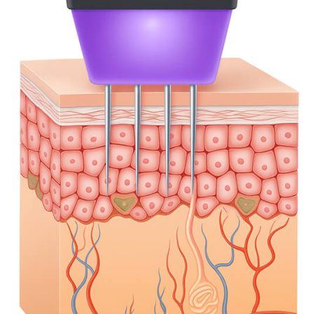 Косметологічний апарат має спеціальну насадку з голчастими електродами, які вводяться безпосередньо в жирову тканину та дерму. Вони випускають потоки RF-енергії, яка стимулює коагуляцію жирової тканини, що призводить до їх ущільнення. Глибину проникнення голок на апараті Morpheus 8 регулʼюють досвідчені лікарі клініки. 💉